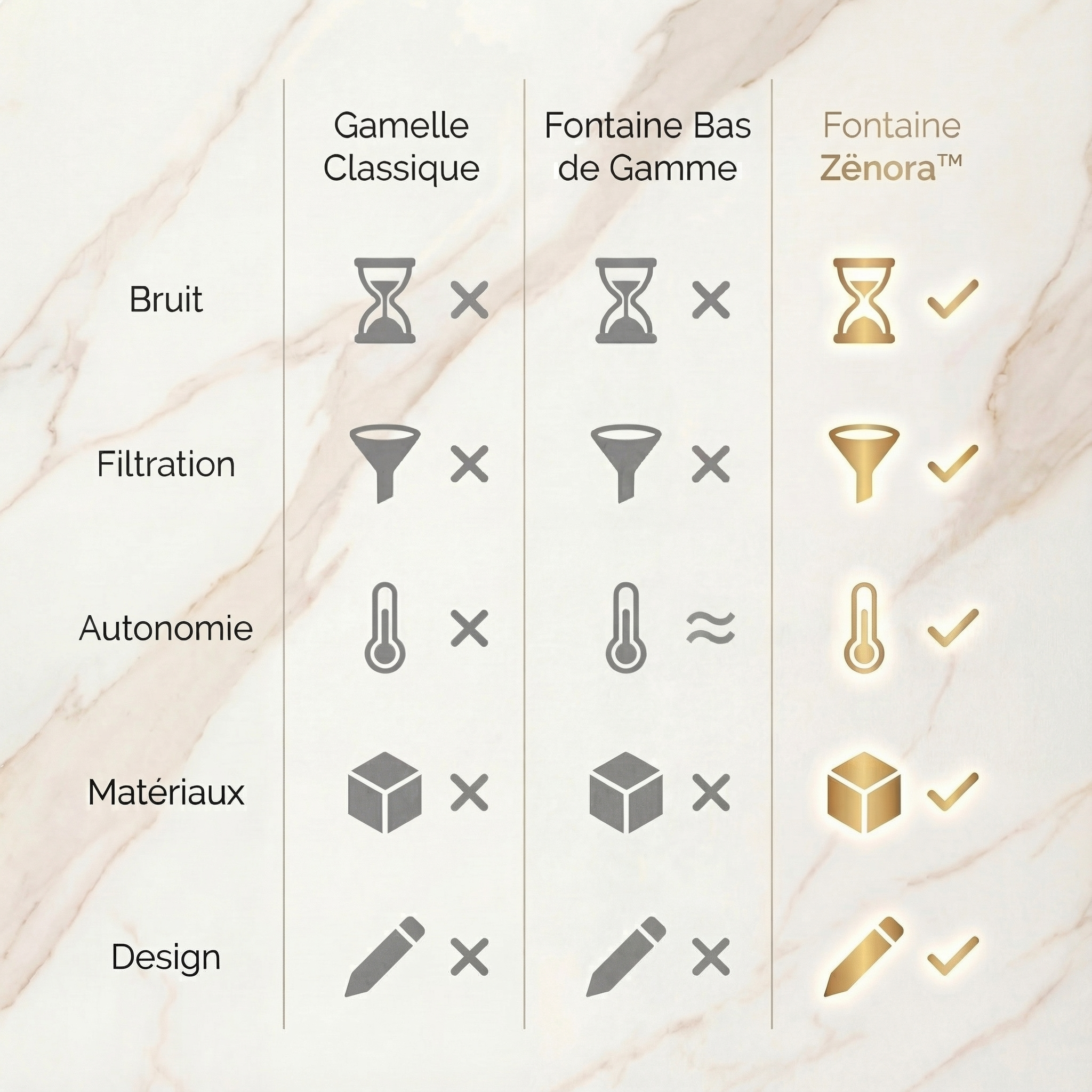 Seule la fontaine Zënora™ combine élégance, sécurité et technologie premium pour le bien-être de votre chat.